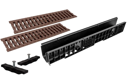Решетка пластиковая "Ромбы" коричневая водоприемная к лотку Европартнер 500 мм - 2 шт