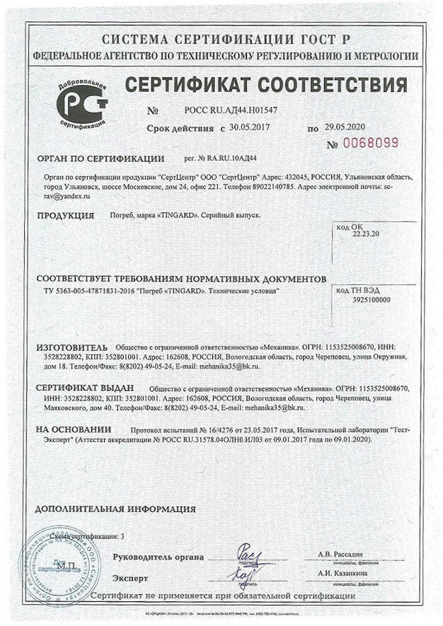 Рекомендуется использовать данный монтажный комплект при установке погребов Tingard.